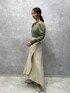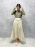 くすみカラーでまとめたコーデ。【トップス】レースデザインなのに甘すぎない印象で着れるブラウス。パフスリーブも程よいボリューム感なので肩幅気にせずに着ていただけます。 【スカート】前上がりになっているヘムラインなので、小柄の方でもバランスが取りやすいスカート!オンオフどちらも使いやすいアイテムです。腰回りの切り返しがあることでハリが気にならず履けます!! 【シューズ】ハンドステッチデザインがおしゃれ見えするフラットシューズ。マットなレザー感が高見えします!