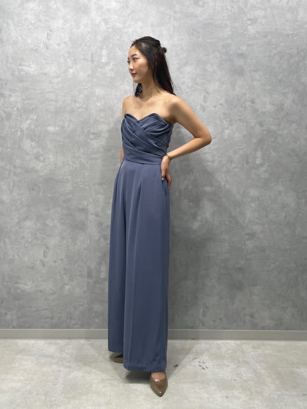 人と被りたくない方におすすめのパンツドレス! 【ドレス】脚長効果抜群のパンツドレス。胸パット付きなので下着も困らずに着ていただけます。しっかりゴムが入っているので落ちてくる心配もないです◎。胸元のギャザーが引き締めてくれ、デコルテもキレイに見えるデザインになってます! 【パンプス】普段ヒール履かない私でも履きやすくてオススメのパンプス。クッション強めなので8センチヒールでもとっても歩きやすくラメが足元をオシャレに見せてくれます 【バッグ】中に袱紗付きの定番バック。パンプスと合わせると、ドレスが変わっても統一感が出るのでおすすめ!デニムと合わせてカジュアルに履いても可愛いです。