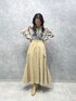 秋のデートコーデ。 【ブラウス】オリジナルのフラワープリントが女性らしいブラウス。程よい透け感がいやらしくない!生地がサラッとしているので、秋の中間服にぴったりです。インナーにブラックのベアトップを合わせてみました。 【スカート】布をたっぷり使ってるのでシルエットがとにかく綺麗なスカート!サイドにスリットが入っているので丈が長めですが抜け感もでて履き心地も◎。ステッチが入っているので綺麗めすぎず、カジュアルにも着こなせます。 【ブーツ】ラグナムーンのスタッフなら絶対1足は持っているブーツ!安定感のあるヒールなので長時間の使用でも疲れずに履けます!どんなスタイリングにも合わせやすい万能ブーツです。