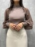 秋のオフィスコーデ。 【トップス】袖のたぷっと感が可愛すぎるトップス!袖は薄手のシアー素材なので季節の変わりめに重宝するトップス間違いなし!程よいルーズさがでるのでロング丈のボトムスとの相性も抜群です。 【スカート】程よいフィット感のマーメイドスカート。後ろ下がりになっているので足が細く見えるデザインになってます。真夏以外ほとんどの季節お使いいただけます。【ブーツ】ラグナムーンのスタッフなら絶対1足は持っているブーツ!安定感のあるヒールなので長時間の使用でも疲れずに履けます!どんなスタイリングにも合わせやすい万能ブーツです。