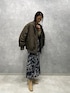 少しカジュアルなブルゾンコーデ。【ブルゾン】袖にギャザーが入っているオーバーサイズのブルゾン。中にたくさん着込めるので真冬もお使いいただけます◎。そして軽い!!お尻をすっぽり隠してくれるので安心です。 【スカート】風合いのある柄がおしゃれなスカート。色味も落ち着いたくすみベージュなので花柄でも甘くならず女性らしく着こなせます。バックにはボタンがついておりインスタイルがおしゃれ!162センチSサイズ着用でこの丈感。ロング好きにはたまらない! 【ニット】何枚もっていても使える万能ニット。ラグナムーンのリブニットはもちもちとした着心地抜群な生地感が特徴!どんなボトムスにも合うので冬の必須アイテムです。 【ブーツ】ラグナムーンのスタッフなら絶対1足は持っているブーツ!安定感のあるヒールなので長時間の使用でも疲れずに履けます!どんなスタイリングにも合わせやすい万能ブーツです。