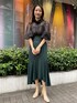 大人の秋コーデ。【ブラウス】インナーのキャミソールがレースになっているデザインブラウス。首元が詰まっていますがシアーなので重く見えない!袖がタプっといているのもポイントです。 【スカート】ハイウエストなので脚長効果もあり、コルセット級に腰回りをすっきり見せてくれるスカート。ポケットも付いているので機能性も抜群です。スカートが後ろ下がりになっていてふくらはぎを細く見せてくれます。小柄な方も履きやすい◎。 【コート】秋の定番トレンチコート。ケープは取り外し可能なのでシンプルな形でもお使いいただけます。肩周りをすっきりと見せてくれる一癖あるお洒落コートです。【ブーツ】ラグナムーンのスタッフなら絶対1足は持っているブーツ!安定感のあるヒールなので長時間の使用でも疲れずに履けます!どんなスタイリングにも合わせやすい万能ブーツです。
