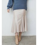トレンドのオーバーニットコーデ。【ニット】密度の高いラクーン生地を使用したニット。保温性に優れておりとても暖かいのが特徴!オーバーサイズなので中にタートルネックなどをレイヤードするスタイリングもオススメです◎ 【スカート】マーメイドシルエットが体のラインを綺麗に見せてくれるスカート。落ち感のあるすっきりとしたスカートなのでオーバーサイズのニットとも相性抜群です!光沢感があるので丈が長くても重く見えません◎。 【バック】立体感のあるデザインのバックなのでミニサイズでスタイリングに合わせやすいのに、存在感も程よくあるバック。コーデのワンポイントにもなり可愛い♡ 【ブーツ】ラグナムーンのスタッフなら絶対1足は持っているブーツ!安定感のあるヒールなので長時間の使用でも疲れずに履けます!どんなスタイリングにも合わせやすい万能ブーツです。