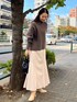 トレンドのオーバーニットコーデ。【ニット】密度の高いラクーン生地を使用したニット。保温性に優れておりとても暖かいのが特徴!オーバーサイズなので中にタートルネックなどをレイヤードするスタイリングもオススメです◎ 【スカート】マーメイドシルエットが体のラインを綺麗に見せてくれるスカート。落ち感のあるすっきりとしたスカートなのでオーバーサイズのニットとも相性抜群です!光沢感があるので丈が長くても重く見えません◎。 【バック】立体感のあるデザインのバックなのでミニサイズでスタイリングに合わせやすいのに、存在感も程よくあるバック。コーデのワンポイントにもなり可愛い♡ 【ブーツ】ラグナムーンのスタッフなら絶対1足は持っているブーツ!安定感のあるヒールなので長時間の使用でも疲れずに履けます!どんなスタイリングにも合わせやすい万能ブーツです。