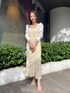 ナチュラルなワントーンコーデ。 【ワンピース】前後2wayで着用できるワンピース。スクエアネックでデコルテが綺麗に見える、ぬけ感があるのでロングでもバランスよく着こなせます!綺麗なIラインのシルエットなので着痩せ効果抜群◎ 【サンダル】ぷっくりとしたフォルムが可愛いサンダル。どんなスタイリングにも合うので一つ持っていると春夏足元に困らない!