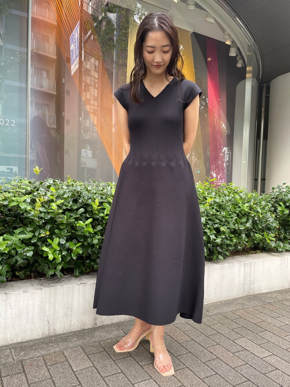 女性らしいブラックコーデ。【ワンピース】立体感のあるフォルムワンピース。とっても軽く柔らかいので本当にストレスフリーで着られます◯。お食事や顔合わせなどにもおすすめです。 【サンダル】柔らかいクリア素材を使用したサンダル。どんなスタイリングにも合うので一つ持っていると春夏足元に困らない!