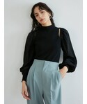 大人のブラックコーデ。【ニット】肩にさりげなくスリットが入っているモテニット。袖のタプっと感も可愛い!柔らかいニット生地なので着心地抜群です。 【スカート】凹凸よある素材感がおしゃれなタイトスカート。下着のラインが全く出ないのが安心!後ろに深めのスリットが入っているので動きやすく◎。 【ブーツ】安定感のあるヒールなので長時間の使用でも疲れずに履けます!どんなスタイリングにも合わせやすい万能ブーツです。
