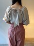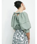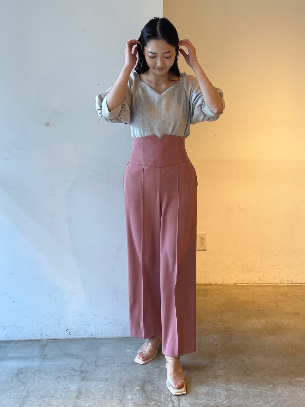 カラーを使ったオフィスコーデ。 【トップス】後ろのリボンやステッチがポイントとなり、着るだけでおしゃれ見えします。生地も柔らかく伸縮性に優れているので着心地◎。デコルテを綺麗に見せてくれる首元の空き具合がちょうどいい!! 【パンツ】風合いが良く落ち感のあるレーヨン混の素材を使用したシンプルなワイドパンツは、お仕事でもお休みの日でも使いやすい一枚!ハイウエストウエストなので足のラインを綺麗に見せてくれます。 【サンダル】柔らかいクリア素材を使用したサンダル。どんなスタイリングにも合うので一つ持っていると春夏足元に困らない!