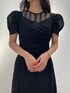 お食事コーデ。【ワンピース】上半身にボリュームがあることでウエストがとっても細見えする1着。首元のレース素材もおしゃれ見えして可愛い💕結婚式やお食事など幅広い場面で着られます。 【ブーツ】ラグナムーンのスタッフなら絶対1足は持っているブーツ!安定感のあるヒールなので長時間の使用でも疲れずに履けます!どんなスタイリングにも合わせやすい万能ブーツです。