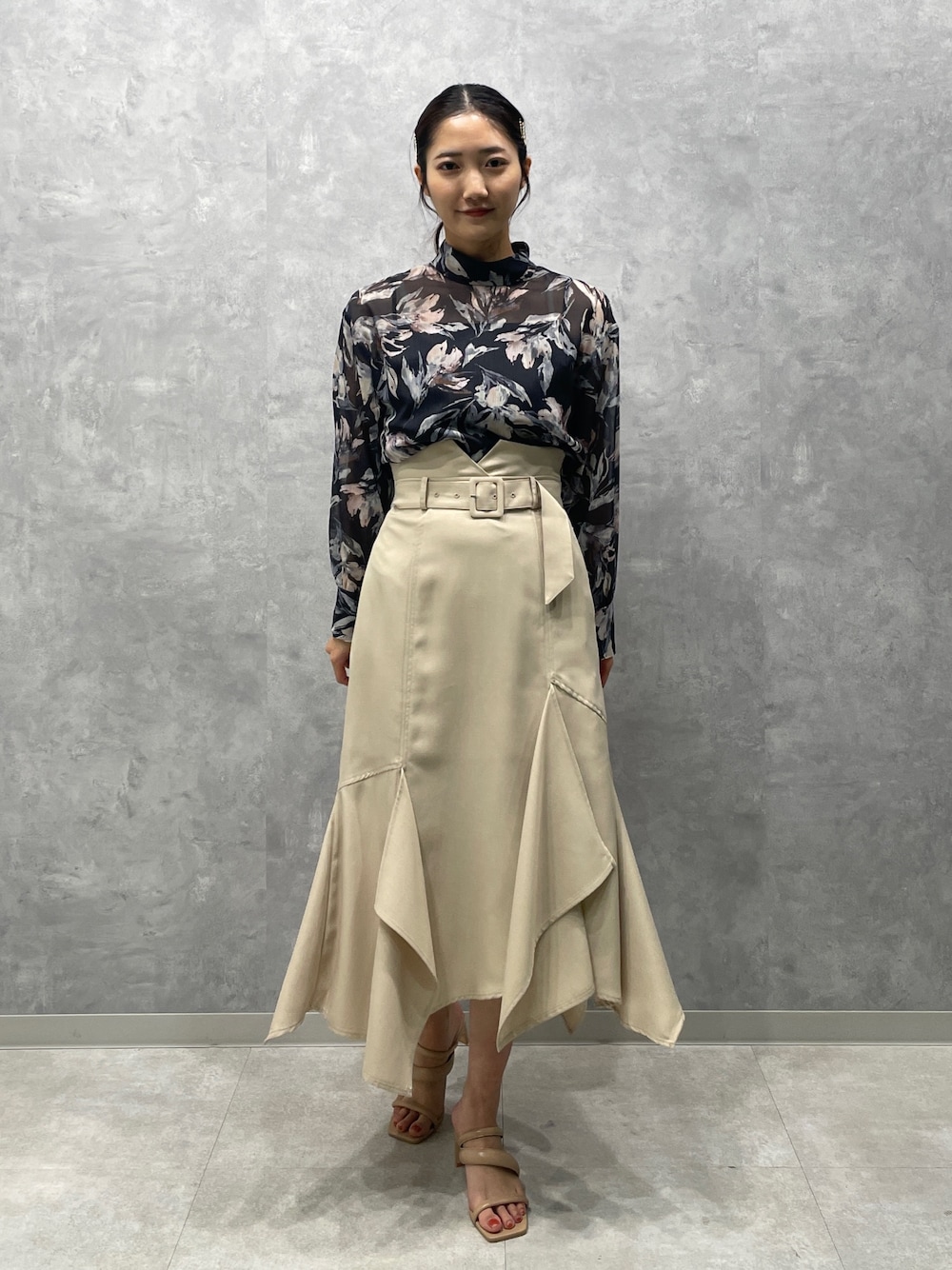 春のブラウスコーデ。【ブラウス】春らしい鮮やかなカラーが特徴のアイテム。ボウタイは取り外し可能なので着回しができるブラウスです!程よい透け感が肌をワントーン明るく見せてくれます◎。 【スカート】ウエスマークがしっかりあるハイウエストスカートなので脚長効果抜群!イレヘムスカートなので履くだけでおしゃれに見えします。裏地が膝丈でスリットが深く入っているためとっても涼しく、軽く履けます。動きが出るマーメイドスカートで全く重く見えないので小柄さんにもオススメ!【サンダル】ぷっくりとしたフォルムが可愛いサンダル。どんなスタイリングにも合うので一つ持っていると春夏足元に困らない!