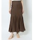 真夏のブラウンコーデ。【トップス】ラグナムーンオリジナルのツイードが可愛すぎるニット。スタッフ人気も◎。本当に柔らかい生地なので着心地抜群!そして前後どちらでも着用できる優れもの! 【スカート】裾の広がりが動くたびに女性らしくみせてくれるスカート。細身のサイズ感なので華奢な方におすすめです!縦にラインが入っているので脚長効果も抜群◎。 【サンダル】柔らかいクリア素材を使用したサンダル。どんなスタイリングにも合うので一つ持っていると春夏足元に困らない!