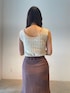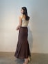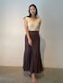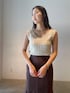 真夏のブラウンコーデ。【トップス】ラグナムーンオリジナルのツイードが可愛すぎるニット。スタッフ人気も◎。本当に柔らかい生地なので着心地抜群!そして前後どちらでも着用できる優れもの! 【スカート】裾の広がりが動くたびに女性らしくみせてくれるスカート。細身のサイズ感なので華奢な方におすすめです!縦にラインが入っているので脚長効果も抜群◎。 【サンダル】柔らかいクリア素材を使用したサンダル。どんなスタイリングにも合うので一つ持っていると春夏足元に困らない!