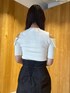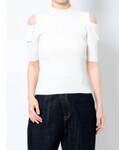 モノトーンコーデ。【トップス】ヘルシーな肌見せがおしゃれなニット。肩の切り返しデザインも珍しくて可愛い♥春から秋まで着用可能です!【スカート】プリーツの入った珍しいデニムスカート。デニム生地なのでオールシーズン使えます。生地感もしっかりしているので腰回りもカバーされ◎。デニムなので履く度に馴染み、自分の体型に合わせて綺麗にシルエットがでます。細身の方におすすめのスカートです! 【サンダル】柔らかいクリア素材を使用したサンダル。どんなスタイリングにも合うので一つ持っていると春夏足元に困らない!