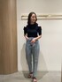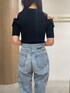 カジュアルすぎないデニムコーデ。【トップス】ヘルシーな肌見せがおしゃれなニット。肩の切り返しデザインも珍しくて可愛い♥春から秋まで着用可能です!【サンダル】ぷっくりとしたフォルムが可愛いサンダル。どんなスタイリングにも合うので一つ持っていると春夏足元に困らない!【デニム】アシンメトリーデザインがおしゃれすぎるデニムパンツ!シルエットがすっきりしているので、ラグナムーンのデニムは女性らしく着れる!シンプルなトップスと合わせてもデザイン性があるから野暮ったく見えずに着こなせます!