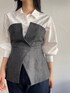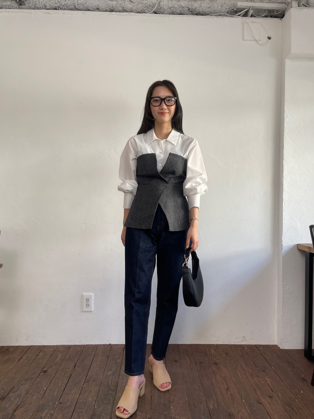 【トップス】シャツとドッキングされているので一枚でおしゃれ見えするトップス。オンオフどちらでも着られます!袖を捲ってタプっとさせるスタイリングがおすすめ!腰回りすっきりとしたボトムス合わせが可愛いです。 【デニム】アシンメトリーデザインがおしゃれすぎるデニムパンツ!シルエットがすっきりしているので、ラグナムーンのデニムは女性らしく着れる!シンプルなトップスと合わせてもデザイン性があるから野暮ったく見えずに着こなせます!