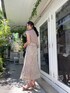 【ニット】肩に大ぶりのパールがついているデザインニット。一癖あるデザインが目を惹きます。シンプルなボトムスと合わせてもおしゃれに見えるアイテム! 【スカート】大柄レースがポイントのスカート。ハイウエストなのでとてもスッキリ見せてくれます! 【サンダル】柔らかいクリア素材を使用したサンダル。どんなスタイリングにも合うので一つ持っていると春夏足元に困らない!