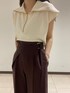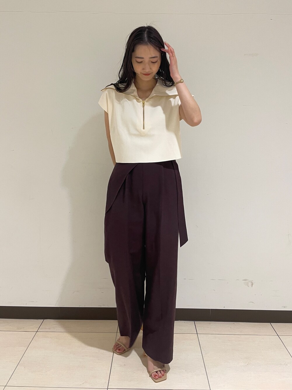 【トップス】シャリ感のあるルーズなジップニット。ひんやりとした接触冷感素材なので真夏もストレスゼロで着ていただけます!どんなボトムスにも合うシンプルなデザイン!セットアップできるとさらにおしゃれ見えします! 【パンツ】ハイウエストデザインなので履くだけでスタイルアップが叶うパンツ。センタープレスが入っているのですっきりと見えカジュアルすぎないのがポイント♡生地感が軽く本当に履き心地がいいです◎ ウエストがアシンメトリーなのもおしゃれ見えするポイント! 【サンダル】ぷっくりとしたフォルムが可愛いサンダル。どんなスタイリングにも合うので一つ持っていると春夏足元に困らない!
