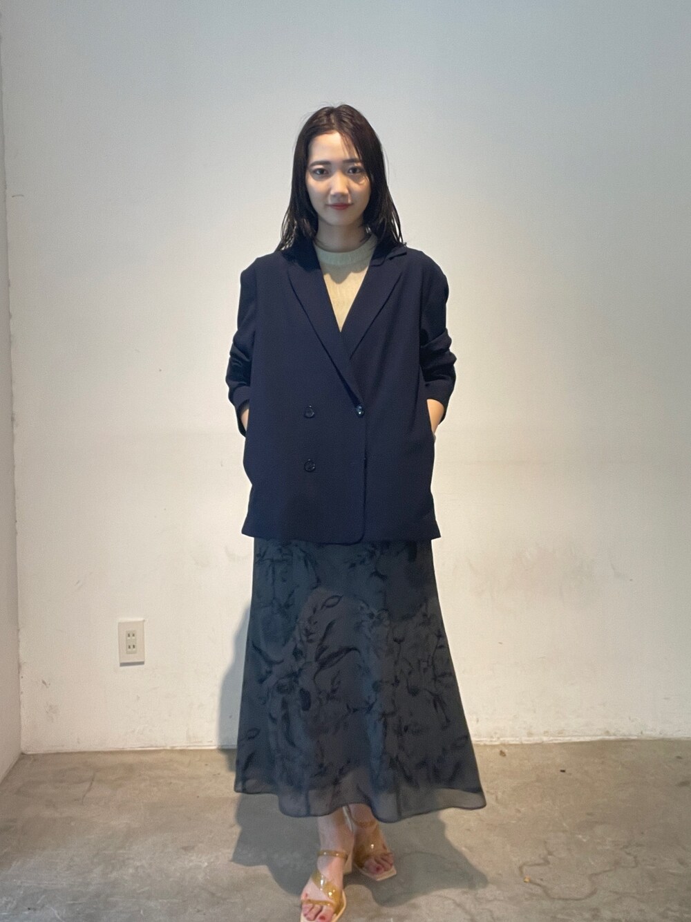 【ジャケット】生地感が薄くサラッとしたジャケットなのでお仕事っぽく見えずカジュアルに着こなせます。またポケット付きなのでちょっとしたお出かけにも嬉しい! 【ブラウス】凹凸のあるサラッとしたブラウス!伸縮性もありとっても軽い生地なので真夏にぴったりです。後ろから見ても可愛いデザインなので一枚できるのがおすすめ! 【スカート】風合いのある柄がおしゃれなスカート。色味も落ち着いたくすみベージュなので花柄でも甘くならず女性らしく着こなせます。バックにはボタンがついておりインスタイルがおしゃれ!162センチSサイズ着用でこの丈感。ロング好きにはたまらない! 【サンダル】柔らかいクリア素材を使用したサンダル。どんなスタイリングにも合うので一つ持っていると春夏足元に困らない!