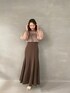 【ドレス】2wayで着られるドレス。裾が広がっているシルエットがとっても綺麗でウエストをすっきりと見せてくれます。柔らかい生地感のトップスが優しい雰囲気にしてくれます。ショート丈なので脚長効果もあります✔︎ 【パンプス】普段ヒール履かない私でも履きやすくてオススメのパンプス。クッション強めなのでとっても歩きやすくチュール生地が足元をオシャレに見せてくれます