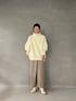 【ニット】もこもこ、ふわふわな触り心地抜群のボリュームニット。これ一枚で主役級なアイテムです。とにかく暖かく着心地最高!袖もしっかりとまるので手首を上げて抜け感出すのもおすすめです!【パンツ】アシンメトリーデザインになっているおしゃれパンツ。ツイード素材なので体のラインを拾いにくく安心して着られます。オンオフどちらも使えるアイテムです! 【ブーツ】ラグナムーンのスタッフなら絶対1足は持っているブーツ!安定感のあるヒールなので長時間の使用でも疲れずに履けます!どんなスタイリングにも合わせやすい万能ブーツです。
