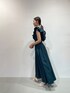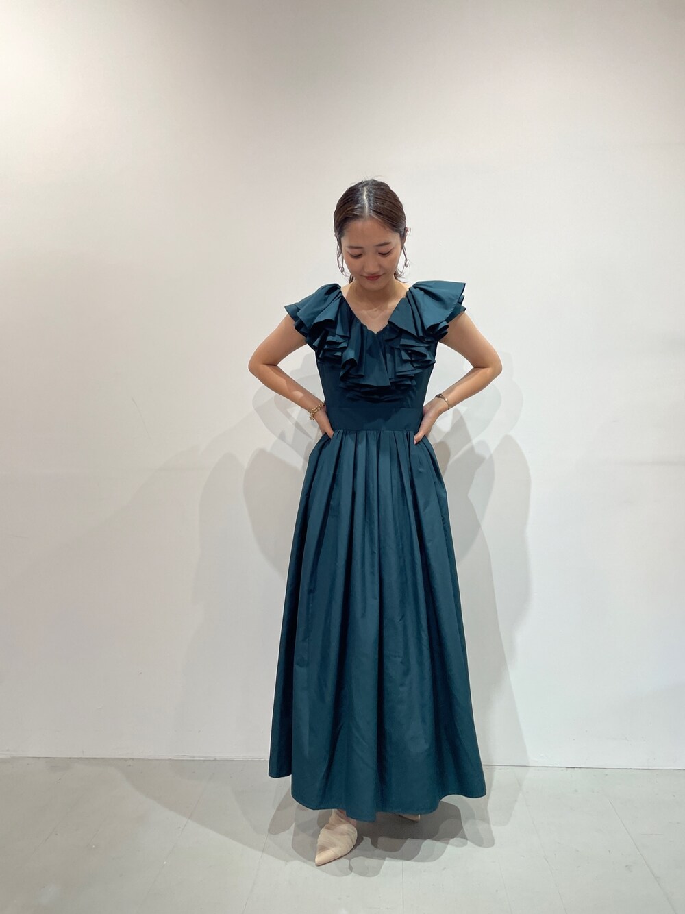 【WEB SHO &POP UP限定ドレス】 たっぷりと贅沢に布を使ったボリューム感が特徴のドレス。特別な日に着たくなるアイテムです。程よく二の腕を隠してくれます!ウエストがしっかりとまるので細見え効果も抜群!ロング丈が好きな方にお勧めしたいドレスです。【パンプス】普段ヒール履かない私でも履きやすくてオススメのパンプス。クッション強めなのでとっても歩きやすくチュール生地が足元をオシャレに見せてくれます。