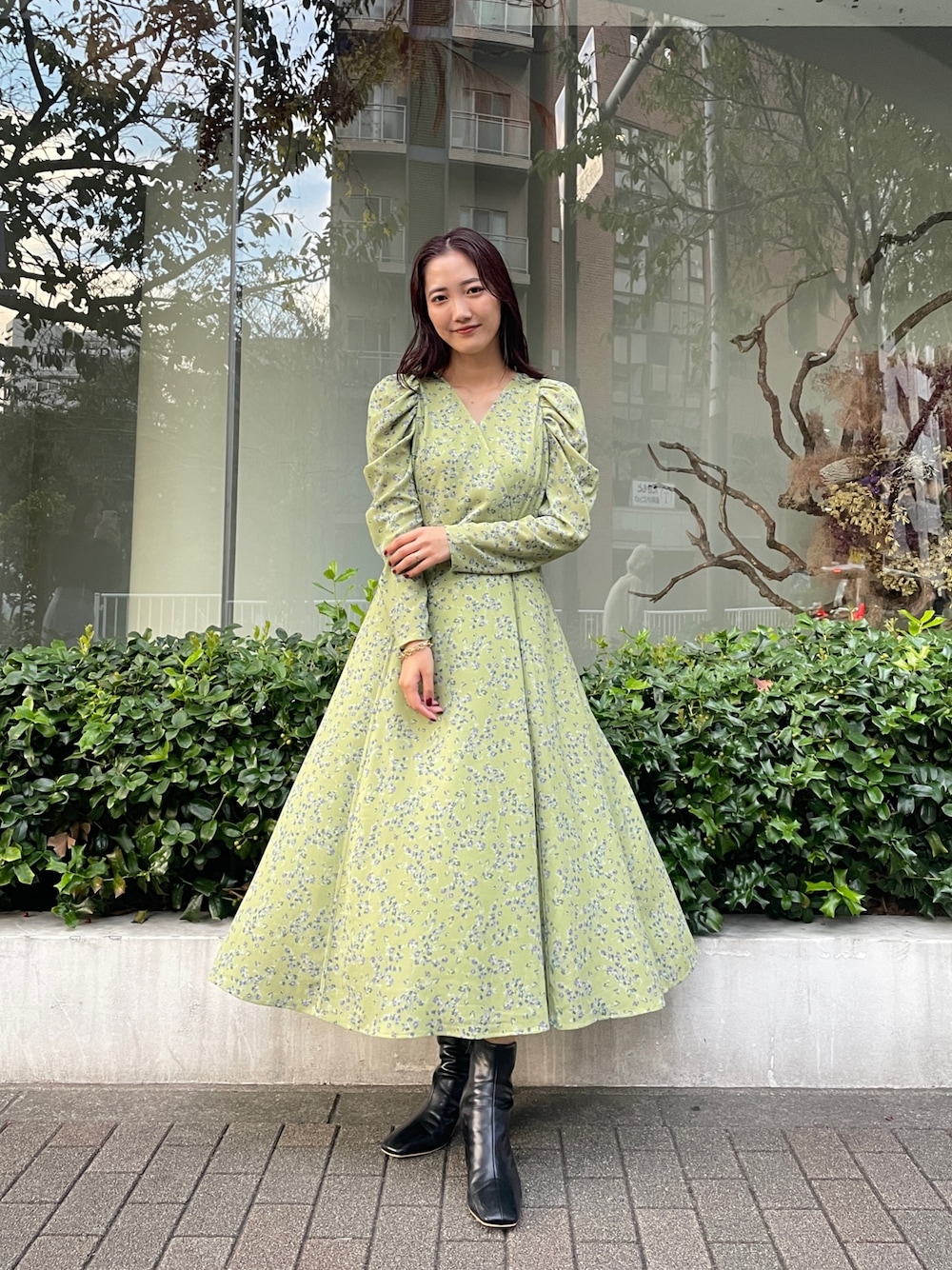 【ワンピース】首元をスッキリ見せてくれるカシュクールデザインの女性らしいワンピース。とにかく着心地が良くストレスフリーな生地感!どの角度から見てもシルエットが綺麗なのでぜひ一枚で来て頂きたいアイテムです。162センチで脛下あたりの丈感なので小柄な方も着やすいワンピースです◎ 【ブーツ】ラグナムーンのスタッフなら絶対1足は持っているブーツ!安定感のあるヒールなので長時間の使用でも疲れずに履けます!どんなスタはイリングにも合わせやすい万能ブーツです。