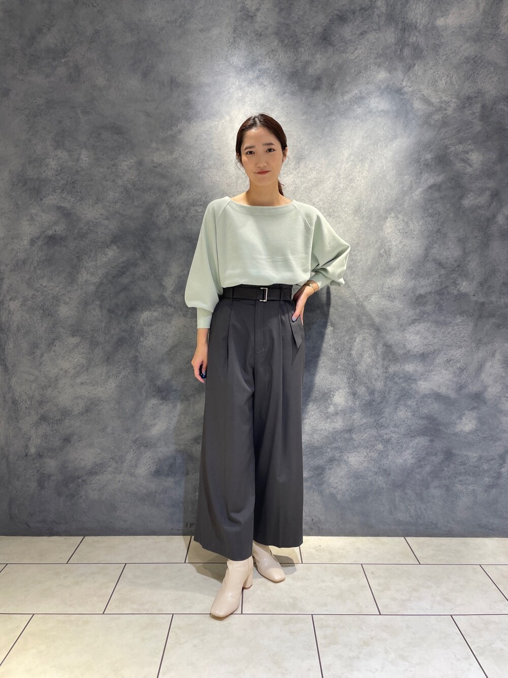 【ニット】手洗い可能で毛玉が全くできないという最強ニット!ドルマンスリーブなので袖を少し上げるとタプッとしたシルエットになり可愛いです♡ 着心地もよく二色買いされるお客様も多いアイテム!程よくデコルテを見せてくれるので綺麗めスタイリングが好きな方におすすめです。【パンツ】ハイウエストデザインなので脚長効果抜群なパンツ。タックが入っているので腰回りすっきり見せてくれます。【ブーツ】ラグナムーンのスタッフなら絶対1足は持っているブーツ!安定感のあるヒールなので長時間の使用でも疲れずに履けます!どんなスタイリングにも合わせやすい万能ブーツです。
