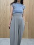【トップス】顔周りにデザインがあるので華やかな印象にしてくれるニット。メッシュレースなので甘すぎずに大人でも着やすいデザインです!【パンツ】光のあたり加減で少し色味が変わる、ほんのり光沢のあるパンツ。ウエストマークが太めでハイウエストなので履くだけで脚長効果抜群です! 【シューズ】程よく足元に抜け感を出せるパンプス。どんなスタイリングにも合うので一足持っているとコーデの幅が広がりますね!