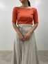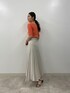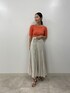 【ニット】シルク混の肌触り抜群のニット。とっても馴染みやすい素材なので体型問わずに気に入っていただけるトップスです! 【スカート】コットン100%なので、肌触りが良く通気性に優れているスカート。とっても軽いので風に揺れたシルエットが女性らしい◎。カジュアルにも、綺麗めにも着こなせるアイテムです。【シューズ】程よく足元に抜け感を出せるパンプス。どんなスタイリングにも合うので一足持っているとコーデの幅が広がりますね!