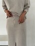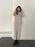 【トップス】スウェット生地ですが綺麗めなスタイリングもおすすめのトップス。首元が珍しくVネックなのでデコルテを綺麗に見せてくれ女性らしい印象にもなります◎ほんのりラメが入っているのもポイントです!【スカート】トップスとセットで着るのがおすすめの同素材のIラインスカート。前スリットなので動きやすさはもちろん、チラッと足元が見えるのが大人可愛くてお気に入り!【ブーツ】ラグナムーンのスタッフなら絶対1足は持っているブーツ!安定感のあるヒールなので長時間の使用感でも疲れずに履けます!どんなスタはイリングにも合わせやすい万能ブーツです。