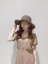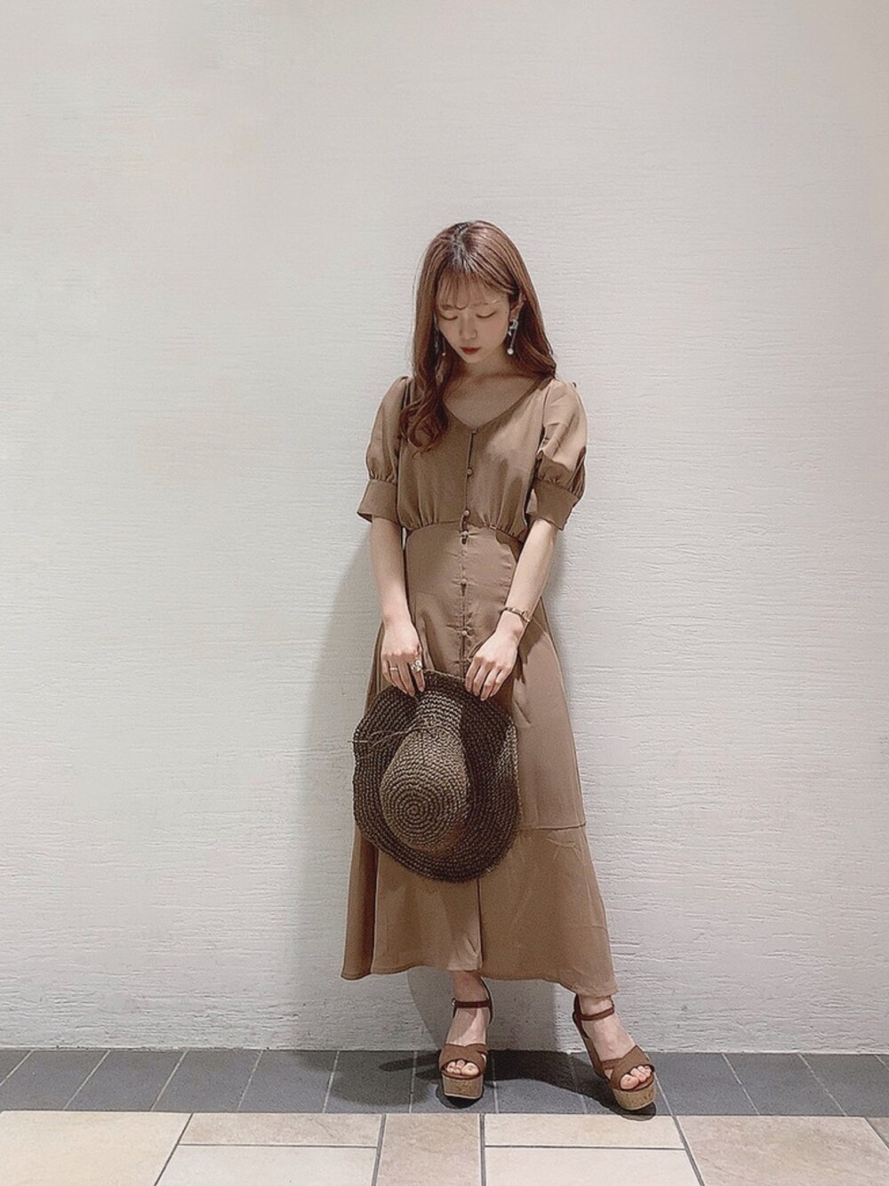 こちらのワンピースは、ウエストマークがしっかりついてあるので、高身長の方はもちろん、低身長の方でもしっかりバランスよくスタイルアップして着ていただけます♡ 首元が深めのVネックになってるので顔周りがスッキリ見えるのも嬉しいですね ♪ 私の1番のお気に入りポイントは、後の部分です!背中が開きすぎるのが苦手なのですが、このくらいの開き具合だと、インナーが見えることもないですし、アウターを脱いだ時に思わず目線を奪えるようなリボンの色が違うところも可愛くてお気に入りです♡ ボタンもくるみボタンだったり、袖が少しパフスリーブっぽくなってるところもあざとかわいくてずるい1枚になってます♪ カラーも4色あるので、お気に入りのカラーを見つけてくださいね !