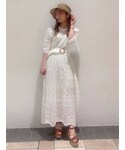 1枚パッと着るだけで、大人女子になれちゃうこちらのクロシェ編みのワンピース。インナー付きなので安心して着れるのが嬉しいですね ♪ 私のお気に入りポイントは、よ〜く見てみると、切替ごとに編み目が変わっていてシンプルなのですが、デザインがしっかり凝っているところがお気に入りです♡ニットワンピなのに、ボディラインを強調することなく、ゆったり着ていただけるので、ボディラインの出るタイトなワンピースが苦手な方にもオススメです!コルクヒールと麦わら帽子を一緒に合わせて、よりリゾート気分で合わせてみました♡