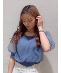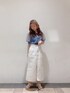 涼しげで女性を綺麗に見せてくれるチュールをふんだんに使ったこちらのトップス。腕部分から胸元までふわっと華やかに見えます♡ 胴部分がニット素材になっているので、まだ肌寒い日もある春にはピッタリのトップス!カラーは落ち着いたブルーなので、明るめのブルーが苦手なイエベさんでも着やすくなっています♪ 一緒に合わせているステッチの入ったホワイトのスカートは、Iラインシルエットで履いて頂けますが、ヒップラインが強調されないので、下半身が気になる方でも大丈夫です◎ 足元は、クロシェデザインになっているクリアヒールサンダルで全体的に爽やかに仕上げました♪