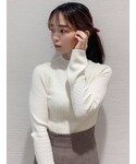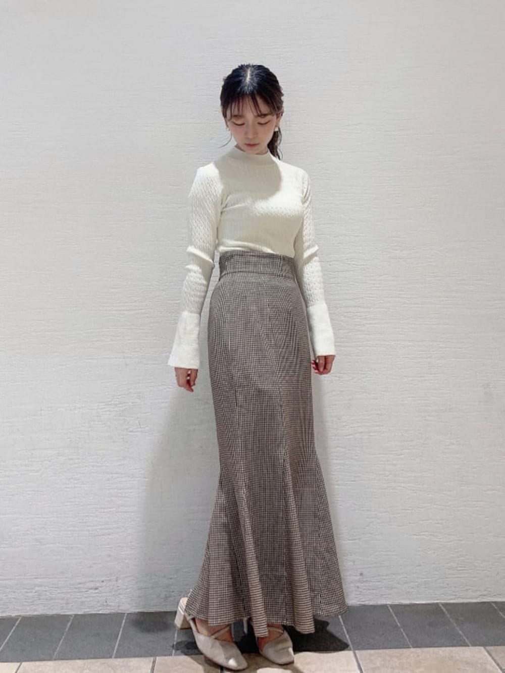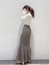 シンプルなのにこなれ感溢れる♪ 秋の大人フェミニンコーデ♡ 【トップス】着心地も柔らかい、厚すぎないのにしっかり立体感のあるニットトップス。秋服、何から買おうかな?と悩んじゃう時におすすめしたい、どんなボトムスにも合う着回しやすいトップスです。私はチェック柄のマーメイドスカートと合わせて、より秋っぽく合わせました♪ トップスの袖の部分が少しだけ広がってるのも隠れたポイントです♡ 【スカート】 ハイウエストで脚が長〜く見える!低身長の私には嬉しいアイテム♡ 153cmですが、丈感も低めのパンプスと合わせても履けました♪ ウエスト部分は後ろがギャザーになっているので、締め付け感なく着れます◎お素材がサラッとしているので、晩夏から使っていただけて、夏〜秋の微妙な季節の変わり目にも使いやすい♡ 大人気のマーメイドスカートは持ってて損なし!