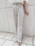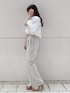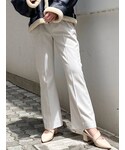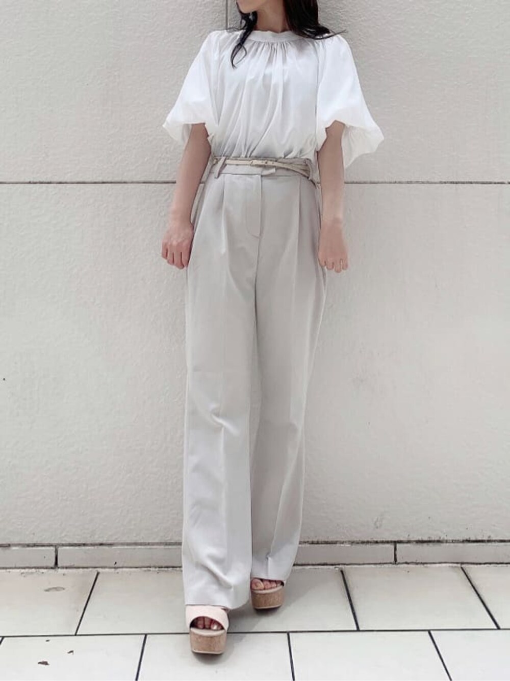 パンツを大人可愛く着たい!フェミニンさんにおすすめコーデ♡ 【トップス】 ほんのり透け感のある上品に着ていただけるブラウスになってます♡ インナーは白で合わせるのがおすすめです。首元のデザインが私の1番のお気に入りポイントで、他にはないデザインに一目惚れ♡ 詰まりすぎてないのに開きすぎてない。この絶妙な首元がお気に入りです。くるっと後ろを振り返ると、さり気ないバックリボンにきゅん♡ お袖はボリューム感たっぷりのバルーン袖になっているので、ボトムスはタイトなシルエットのものがおすすめ!とことん甘めに着たい方は、ティアードのスカートなどと合わせても◎ 【パンツ】 普段パンツを全く履かない甘めコーデ派の私ですが、このパンツは欲しい!と思いました♪ブラウスと合わせてフェミニンにコーディネートするのがお気に入り♡ デザインもシンプルで、ボディラインが出すぎない、セミフレアシルエットで下半身が気になる私も、ヒップ周り、太ももあたりもしっかりカバーしてくれるこのパンツに感動しました♡ 丈感は、153cmでSサイズを着てみましたが、少しだけ長かったのでヒールのあるシューズと合わせるとちょうど良かったです◎