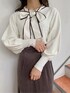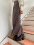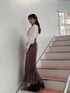 ボウタイ×ベロアのきちんと感◎ 清楚なお嬢様コーデ♡ 【トップス】 サラッとしていて着心地のいいボウタイ付きトップス。首が少し詰まり気味なのできちんと感を出して着ていただけます♡ 胸元のボウタイがシンプルなトップスのポイントになります♪リボン結びすれば可愛らしくトレンド感を出せます◎ 結び方は自由なので好きな結び方で着ていただけますよ♪ 私は、お袖口がキュッとしまっていて、手首がすっきり見えるところがお気に入りポイントです♪ 【スカート】 ベロア生地を使ったマーメイドスカートです。歩く度に綺麗になびいてくれるので、お上品な女性らしい雰囲気を出してくれます◎ 153cmの私がSサイズを履くと、ウエストは薄目のニットをINして着ると丁度いいサイズ感で、丈はくるぶしより少し上くらいで履けたので、少し長めの丈感で履けました♡ 私はボウタイニットと合わせて、女の子らしさもあるお上品コーデに仕上げてみました♪