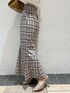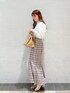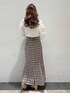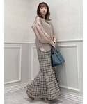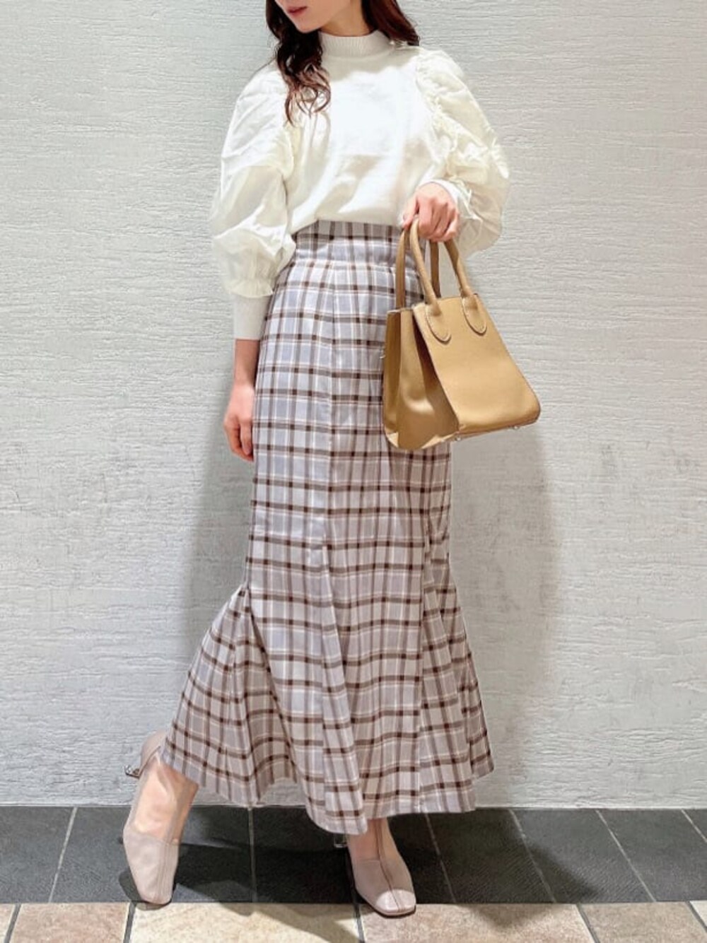 今から着れる!春コーデ♡ 【トップス】 肩のところまでしっかりフリルが施されているふんわりなお袖がポイント!少し透け感がありますが、白のヒートテックと一緒に着てもバレないくらいです◎ スカートと合わせて甘めにコーディネートするのがオススメ!ジャンスカのインナー使いにしたりと、春先までたくさん使える1枚です! 【スカート】 シルエットが綺麗なマーメイドスカートです。ハイウエストになっているので、脚長効果も抜群。低身長でもスタイルアップ間違いなしです。大きめのチェック柄が目を引くのですでにマーメイドスカートを持っている方でもマンネリ化しない1枚です◎ 私は153cmでSサイズを着用していますが、ヒールなしでも引きずらない丈感でした。ウエストも、薄手のトップスをINしてもずり落ちてこないサイズ感でした! 【シューズ】 透け感の可愛いブーツです。つま先が見えないようになっているので、フットネイルをしていない方でもオシャレ見え間違いなし! ストッキングやタイツと合わせて履いていただけたり、裸足で春先に履くのもオススメ◎