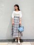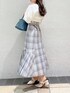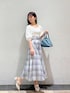 白×ブルーの爽やか春コーデ♡ 【トップス】 首元がスッキリ スクエアになっているので、デコルテを綺麗に見せてくれます。ボリューム感のあるふんわりしたスリーブが女の子らしさ満点◎ シンプルなデザインなので、ボトムスはパンツやスカートなど幅広いボトムスに合わせていただけます♡ 【スカート】 ハイウエストのサイドがプリーツになっているフレアよりのマーメイドスカートです。 かなりウエスト部分がキュッと引き締まる履き心地なので、普段Sサイズでジャストサイズな方は、Mサイズにしても大丈夫かもしれません!私は、普段Sサイズで少しゆとりがあるくらいなので、こちらのスカートはSサイズでジャストサイズでした◎ 丈感も長すぎず、153cmの私でも足首が見えるくらいだったのでぺたんこの靴と合わせても地面にすらないくらいでした◎