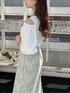 さり気ない肌見せと透け感レーススカートの大人可愛いブルーコーデ♡ 【トップス】 デコルテが綺麗に見えるスクエアトップス♡ ショルダーがさりげなくあいており、露出し過ぎず、大人っぽく着ていただけます。 バックスタイルは、控えめなリボンになっているので大人っぽすぎず、可愛らしさも◎ 【スカート】 季節問わず、1年中履いていただけるレースのマーメイドスカートです。 マーメイドシルエットですが、締め付け感もなく、ボディラインを拾いすぎないので、さりげないラインで着ていただけます。マーメイドスカートが苦手な方にもぜひ試していただきたい1枚です。 裾に少し透け感があるので足元が華やかに見えます♡ 私は153cmですが、Sサイズだと丈感もちょうど良かったです。 【シューズ】 先がスクエアになっているので、トレンド感もあり、ストラップがポイントで目を引く足元になります♡ カラーも、こちらのカラーはグレーですが、他には無い絶妙なカラーでとても可愛かったです♪ 足のサイズは、22.5〜23くらいなのですが、Mサイズだと少しゆとりがありますが、ストラップで調節でき、ホールド感があるので安心して履けました♪