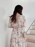 春に着たい!1枚で楽ちんオシャレワンピ♡ 【ワンピース】 柔らかいシフォン素材になっているので、歩く度にふわっとエアリー感が楽しめます♡ 私のお気に入りポイントは、お袖がふんわりバルーン袖になっているところです!二の腕が華奢に見えるので、二の腕が気になる方にもオススメです。 ウエストマークが少し高い位置にあるので、スタイルアップしてみえて、シャーリングになっているので、締め付け感なくキュッと自然に引き締めてくれます♪ バックスタイルはレースアップになっており、さりげない肌見せも楽しめます。 【シューズ】 先がスクエアになっているので、トレンド感もあり、ストラップがポイントで目を引く足元になります♡ カラーも、こちらのカラーはグレーですが、他には無い絶妙なカラーでとても可愛かったです♪ 足のサイズは、22.5〜23くらいなのですが、Mサイズだと少しゆとりがありますが、ストラップで調節でき、ホールド感があるので安心して履けました♪