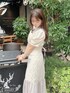 スタイルアップが叶う可愛いが詰まったフェミニンなお上品コーデ♡ 【トップス】 レースがくっついているので、1枚で綺麗に重ね着しているように着ていただけるトップスです♪カシュクールデザインなので、コンパクトで立体感のあるシルエットに仕上げてくれます♡ インナーが見えることも無いので、中は白のキャミと合わせて着用しました! パンツやスカートなど幅広く合わせていただけますが、私はハイウエストのスカートと合わせて、スタイルアップして見えるように脚長効果を狙いました◎ 【スカート】 裾がシアーのシフォン生地になっているので、揺れ感が軽やかでお上品に♡ ウエスト部分は、後ろがレースアップになっているので、ウエストの調節が可能!◎ 普段、Sサイズでも少しウエストが余裕がある方でも、ピッタリサイズに調節していただけます♪ トップスの素材の太さでも調節できるのでかなり優秀でした♡ 腰のラインも綺麗なマーメイドシルエットになるので、脚長効果+女性らしいラインで履いていただけます! 丈感は、153cmの私でくるぶしくらいだったので、少しヒールのあるシューズと合わせて履くと、スッキリ見えて好きでした♡ 【シューズ】 履くだけで脚長効果、細見え効果も高いこちらのサンダル、ヒールが12cmほどあるので、ヒールを履いたことが無い方だと、少し高く感じるかも知れませんが、こちらはヒール部分が全てコルクで出来ているので、びっくりするほど軽いので歩きやすい! ヒール部分が太いので安定感もバッチリです◎ ソール部分にも高さがあるので厚底を履いているような安定感があるのが特徴です! 私は普段、22.5〜23cmの靴を履いていますが、Sサイズでぴったりでした。