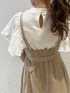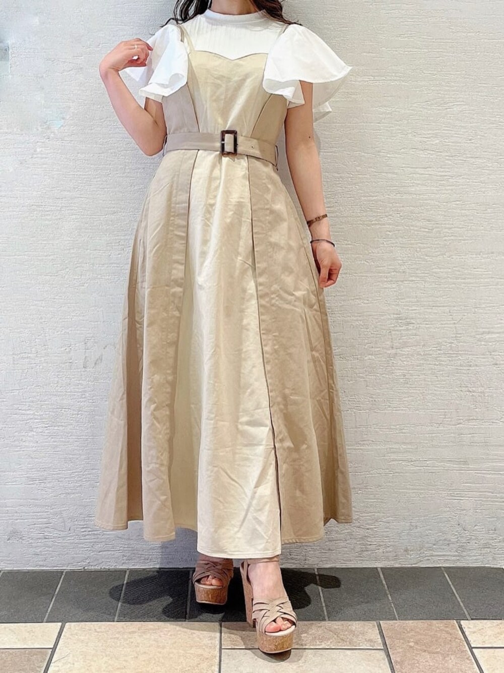 大人可愛い春夏に着たいキャミワンピコーデ♡ 【トップス】 二の腕がほっそりして見える、大きめフリルのお袖がポイント♡シャツ素材なので、ハリ感もしっかりキープしてくれます。胴部分は、スッキリして見える縦リブのカットソーで軽い着心地です。シンプルなデザインですが、スカートやパンツ、キャミワンピースなどのインナー使いにも便利な1枚です♪ 【キャミワンピース】 グラデーションのようになった2色のカラー使いが目を引きます♪ 肩紐が2本になっているのもデザイン性があり、すでにキャミワンピースを持っている方でも楽しめるような1枚です! 肩紐で長さを調節できるので、低身長の方から高身長の方まで幅広くサイズ調節が可能です◎ これから暑くなる季節にぴったりなリネン使いのお素材を使用しているので、サラッと着ていただけます♪ 【シューズ】 履くだけで脚長効果、細見え効果も高いこちらのサンダル、ヒールが12cmほどあるので、ヒールを履いたことが無い方だと、少し高く感じるかも知れませんが、こちらはヒール部分が全てコルクで出来ているので、びっくりするほど軽いので歩きやすい! ヒール部分が太いので安定感もバッチリです◎ ソール部分にも高さがあるので厚底を履いているような安定感があるのが特徴です! 私は普段、22.5〜23cmの靴を履いていますが、Sサイズでぴったりでした。