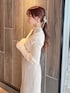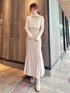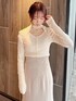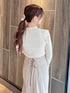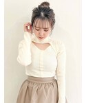 シルエットにこだわった淡色なのに美シルエットコーデ♡ 【トップス】 薄手のピッタリしたニットです。柔らかい着心地で締め付け感なくスッキリタイトに着れます♪フロントのボタンはフェイクです♪ 肩の部分がパワショルになっており、華奢みえさせてくれます◎ デコルテが綺麗に見えるデコルテオープンのデザインが大人かわいいポイント♡ 【スカート】 さらっとした素材で、下半身のラインをスッキリ見せてくれます。ウエストの後ろ部分がレースアップになっているので、調節が可能◎ 私は153cmのSサイズ着用ですが、丈感も丁度よく着れました♡ 【ブーツ】 つま先がスクエアなのがお気に入りポイント♡ピタッと柔らかくフィットしてくれるストレッチショートブーツです。普段22.5〜23cmで、Sサイズ着用です!足首が最初ぴたっとしていましたが、履いているうちに柔らかくなり自分の足に馴染んでくれました!