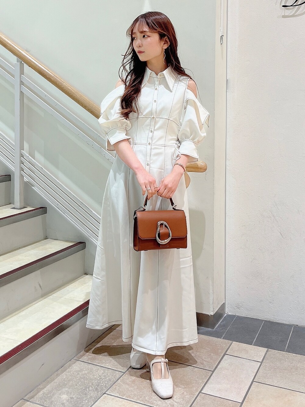 mikako (dazzlin)のワンピース「オープンショルダーデニムステッチワンピース」を使ったコーディネート