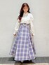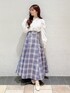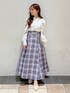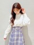 目を引くチェック柄スカートが主役春コーデ🌸 【ブラウス】 首元にデザイン性のあるボタンがついてるシンプルなブラウスです。パワショル風になっているのでトレンド感も🙆🏻♀️ 【スカート】 ビット付きのチェック柄のスカートで一気に目を引くアイテム👀💞 ウエストの後ろはレースアップになっているのでキュッとスタイルアップしてきていただけます! Sサイズ着用なので153cmの私でも丈感もばっちり履けました🫶🏻