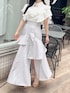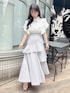 初夏のフェミニンコーデ🤍 【トップス】 柔らかいシャツの素材なので着心地も抜群なトップス。お袖のフリルも二の腕をほっそり見せてくれて着痩せ効果抜群🙆🏻♀️ さりげなくデコルテが開いてるのもあざとかわいい🫢 【スカート】 大きなフリルが目を引くフレアスカートです。リネンライクなお素材で暑い日もサラッと軽く着ていただけます🎶 スリットが入っているので甘すぎず着ていただけます🙆🏻♀️ 【シューズ】 履くだけで美脚見えするサンダルです👡ヒールが高いですが、つま先部分も高いので安定感抜群に履いていただけます!長時間履いても疲れにくい履くとびっくりするくらい軽いです🙆🏻♀️✨22.5〜23cmの私はSサイズでぴったりでした!