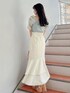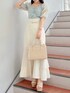大人可愛いミントグリーンコーデ🍃 【トップス】 胸元がギャザーになっているのでボディラインを綺麗に見せてくれて顔周りもスッキリデコルテを見せていただけます。 お袖のふんわり感がポイントで、華奢に見せてくれること間違いなしです! 【スカート】 ゆるやかなマーメイドシルエットが大人っぽい🫢スリットが2箇所入っているのでチラッと足首を見せていただけてスッキリ見えます🙆🏻♀️✨ 153cmでSサイズ着用ですがヒール無しでも履ける丈感でした。 【シューズ】 履くだけで美脚見えするサンダルです👡ヒールが高いですが、つま先部分も高いので安定感抜群に履いていただけます!長時間履いても疲れにくい履くとびっくりするくらい軽いです🙆🏻♀️✨22.5〜23cmの私はSサイズでぴったりでした!