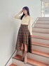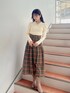 【トップス】 ピタッと綺麗に着れるのでどんなボトムスとも相性抜群◎襟のパールが目を引くクリスマスコーデにもぴったりな1枚。 【スカート】 大人気シリーズマイナス5キロスカートの新作✨目を引くカラーのチェックで周りと被らずオシャレ感を演出できます!