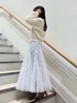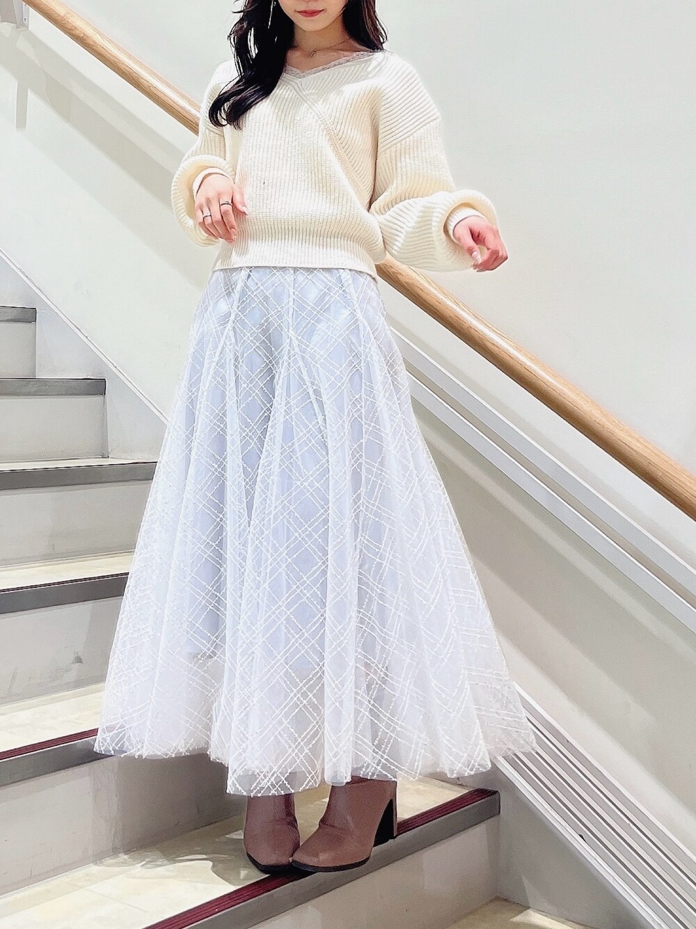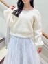 クリスマスにデートで着たいホワイトコーデ🎄🤍 ゆるっとした程よい肌見せができるニットと、スパンコールのキラメキがさり気なくて雪のようです❄️ アウターを羽織っても、脱いでも可愛いホワイトコーデです。