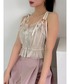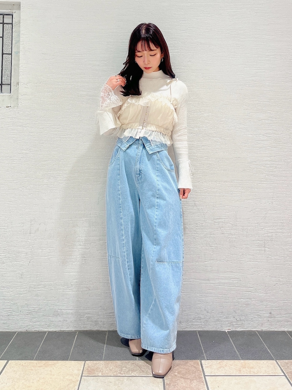 デニム×ビスチェのカジュアルガーリーコーデ♡ 薄手のニットに、前後で着れるビスチェを合わせて春っぽさも🙆🏻♀️ デニムで合わせると甘くなりすぎないのでおすすめ👖🩷